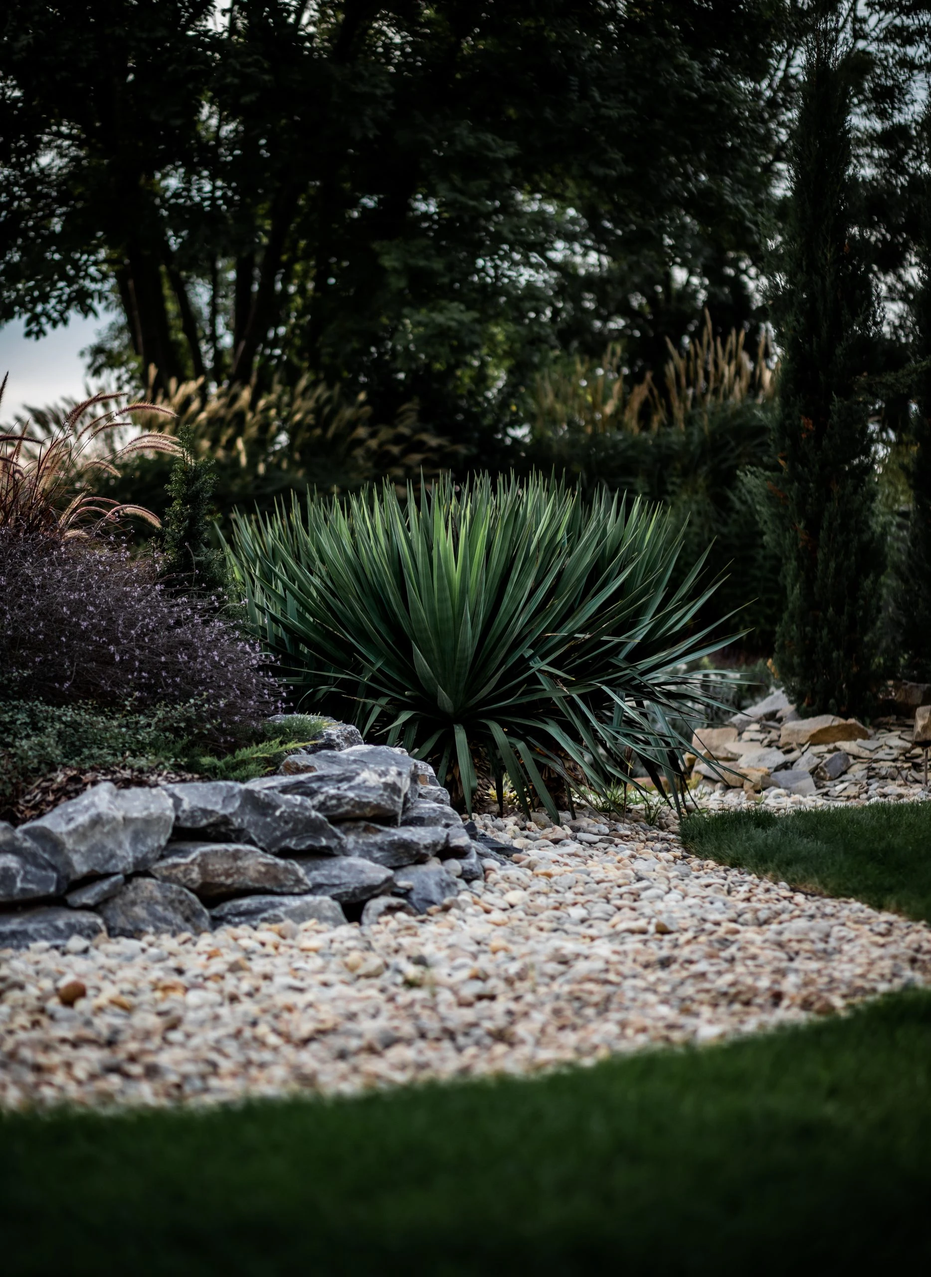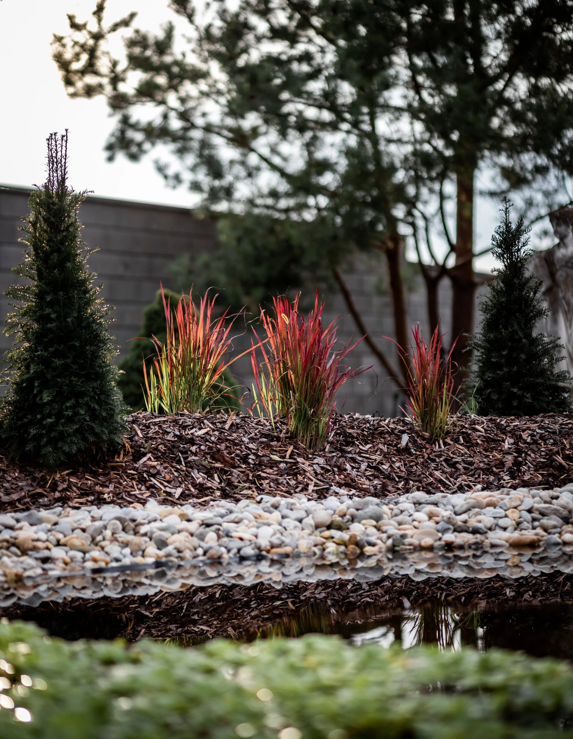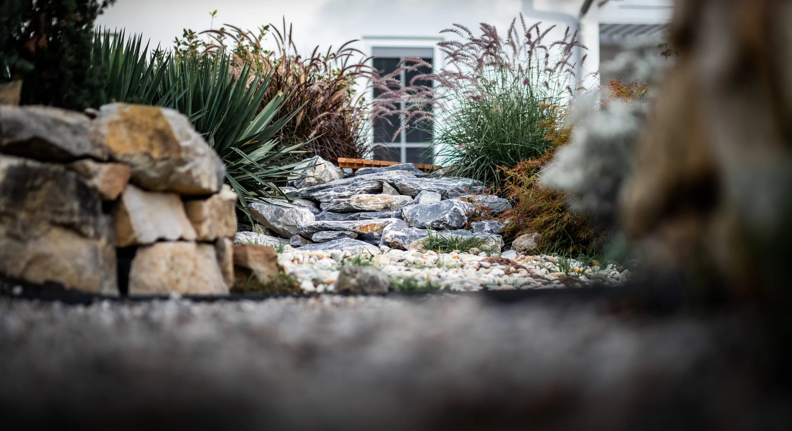 Egy örökölt kert újragondolása 950 m²-en. A központi elem a korábbi medencéből kialakított vízeséses kerti tó, kis híddal – harmonikus, nyugodt atmoszférával. 2022-ben Alsó Ausztria egyik legszebb magánkertjének szavazták meg.